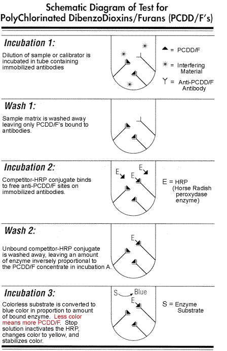 This figure illustrates and explains the incubation and wash steps of the DF1 immunoassay protocol. Key concept: as analyte concentration increases, color development decreases.